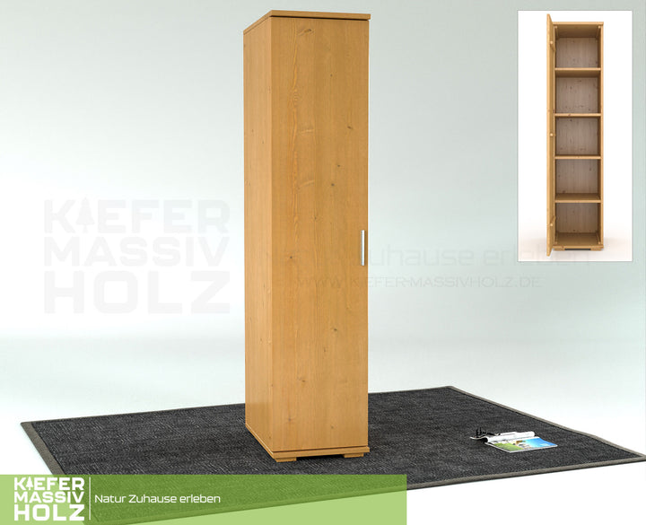 Nobis Kleiderschrank 59 cm Tiefe 1-Türig mit Regale 100% Bio Kiefer Massivholz